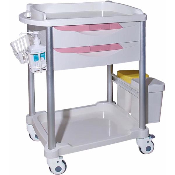 Pink Entral Lock Plastic Steel ABS Treatment Trolley With Drawers Images |